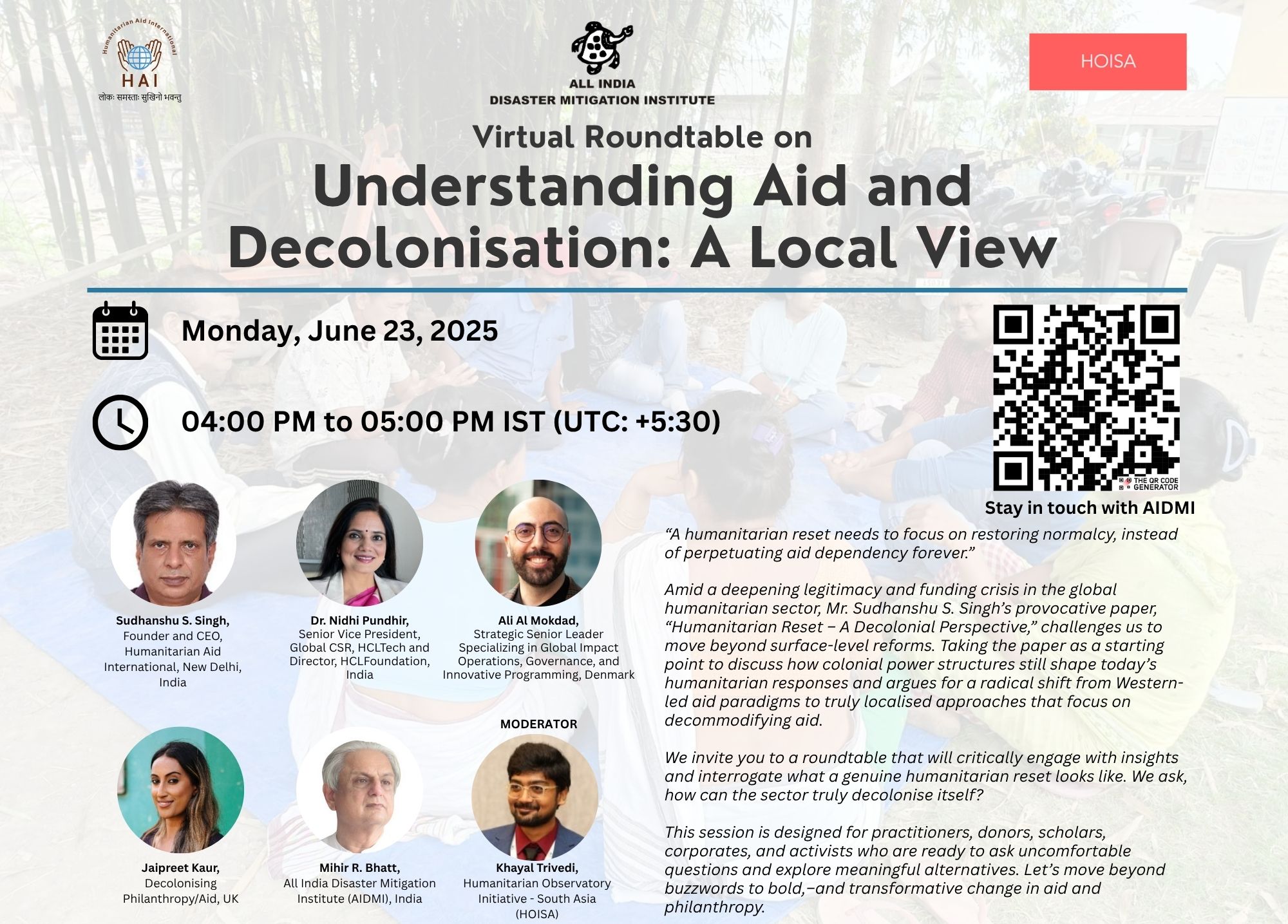 Understanding Aid and Decolonisation: A Local View, Roundtable on Monday, June 23, 2025, from 04:00 PM to 05:00 PM IST